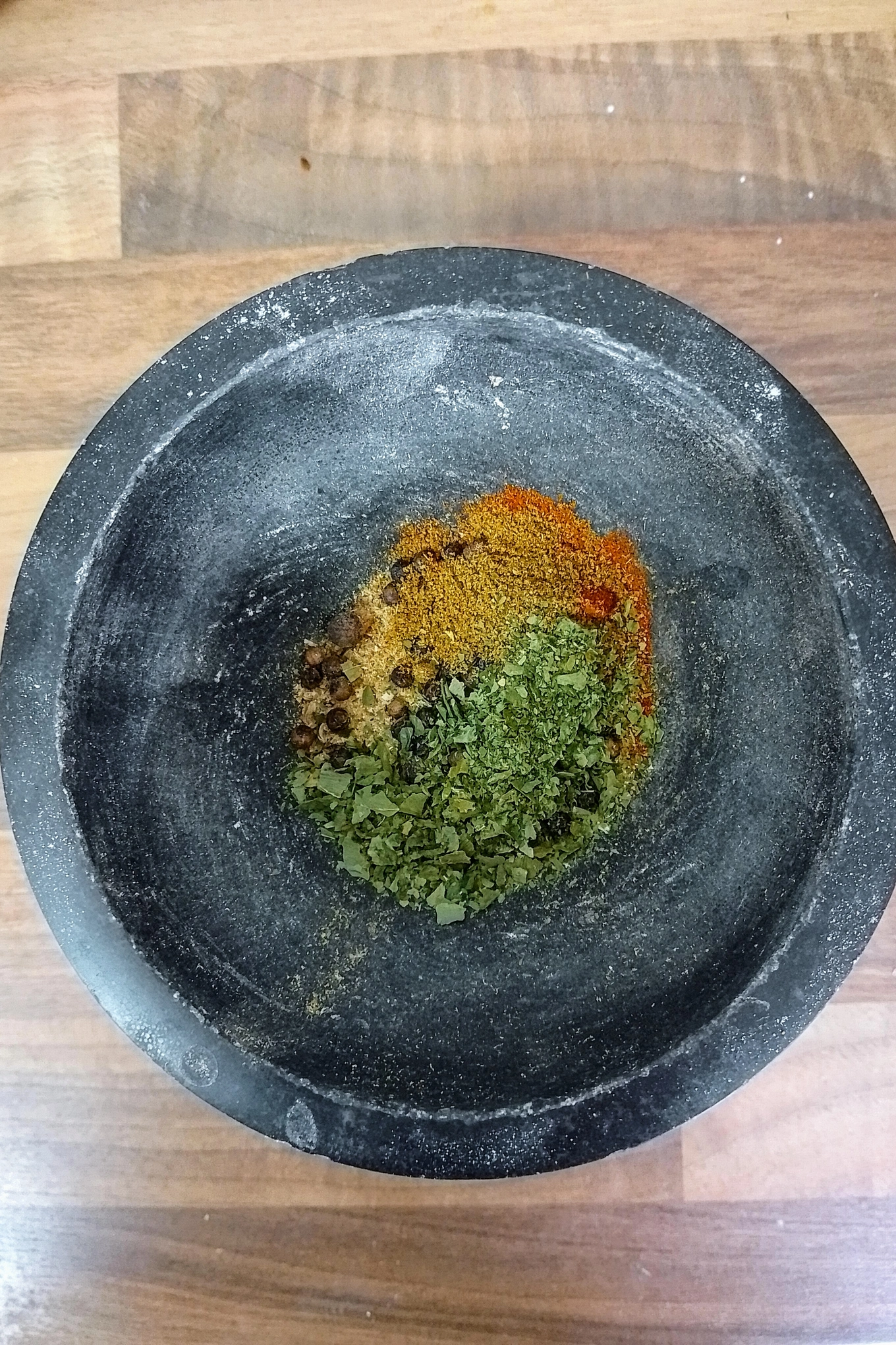 Heizt schon mal den Ofen auf 200 Grad auf und währenddessen zermahlen wir die Gewürze in einem Mörser, falls diese noch nicht verarbeitet sind.